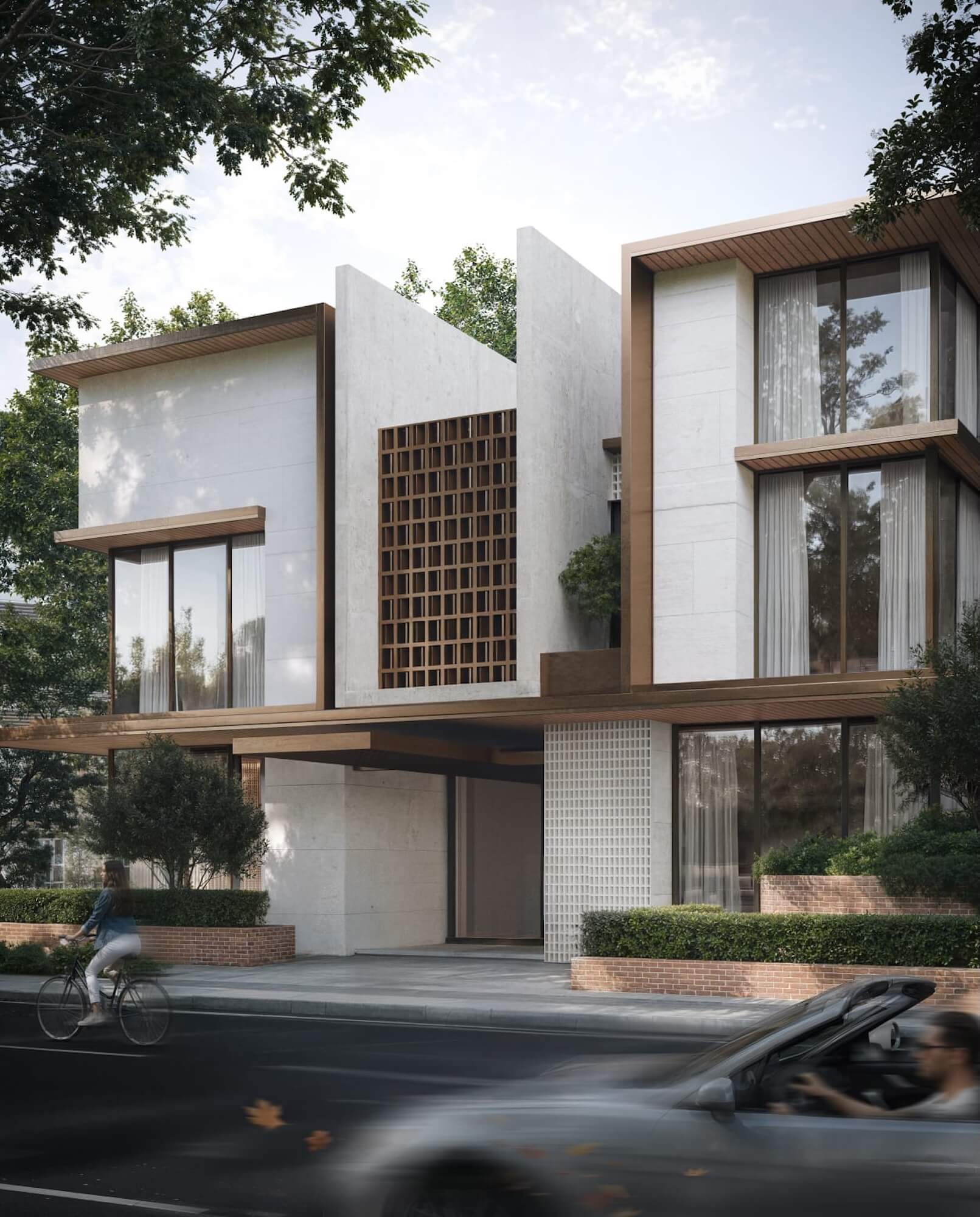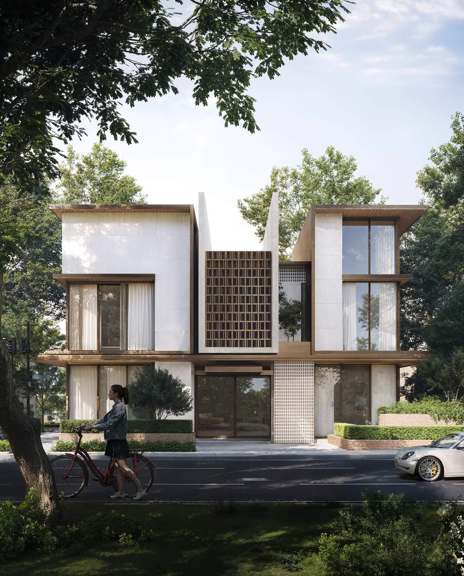 Building includes modern facades and amenities such as a swimming pool and Cafe to provide a convenient and integrated living experience.